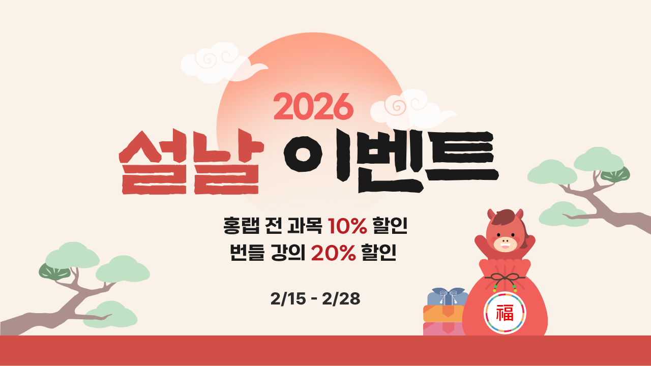 새해의 시작, 실력에 투자할 가장 좋은 타이밍입니다. 이번 기회를 통해 한 단계 성장해보세요.